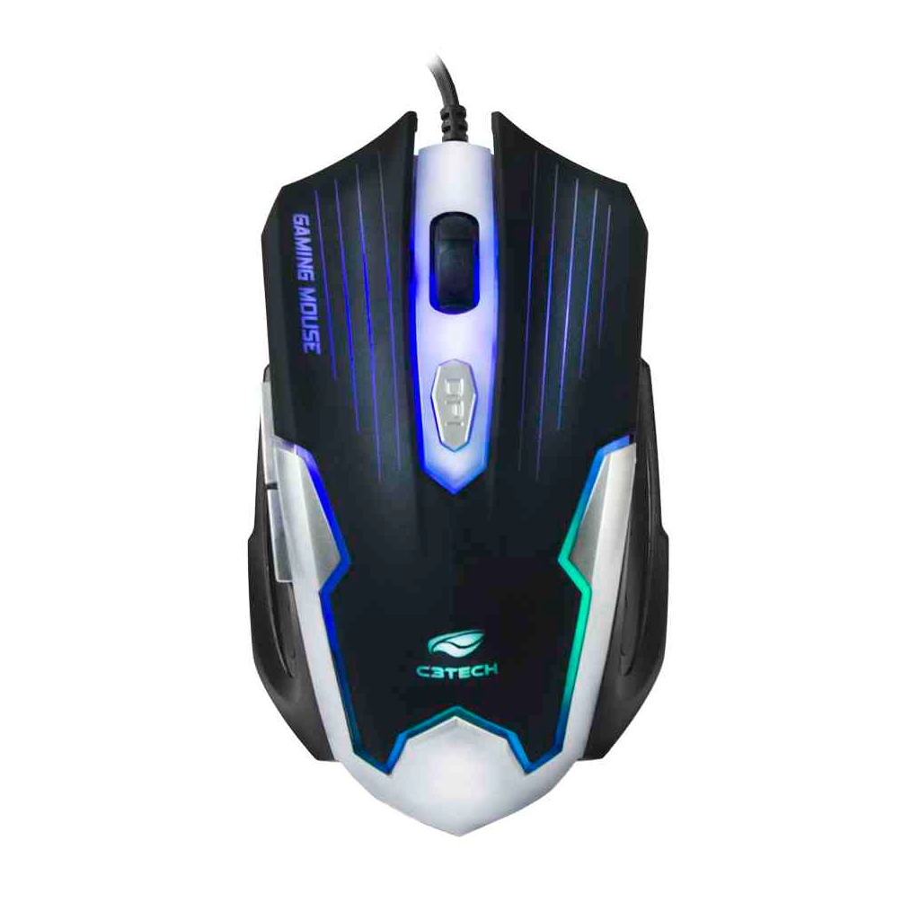 Mouse Gamer com Fio USB MG-11BSI Preto/Prata - C3Tech
