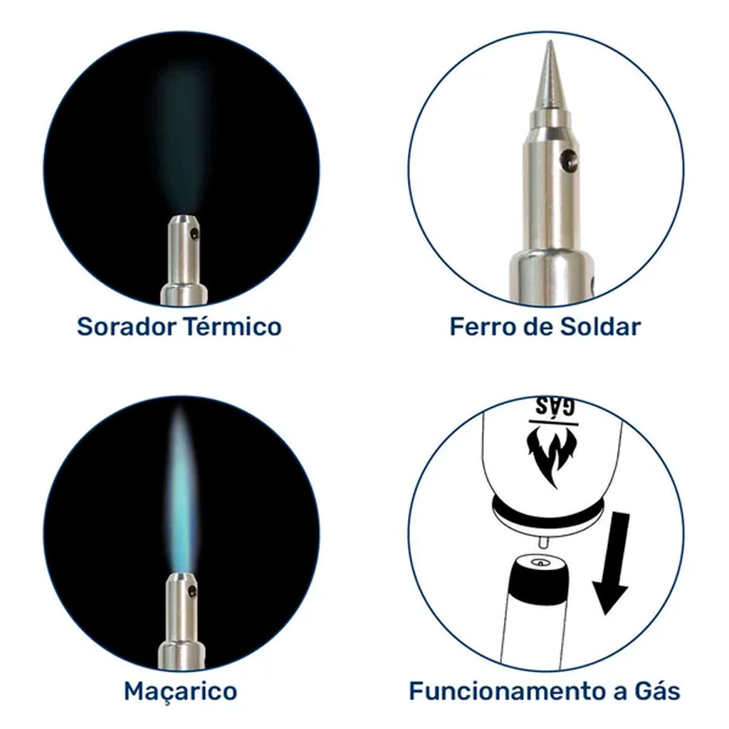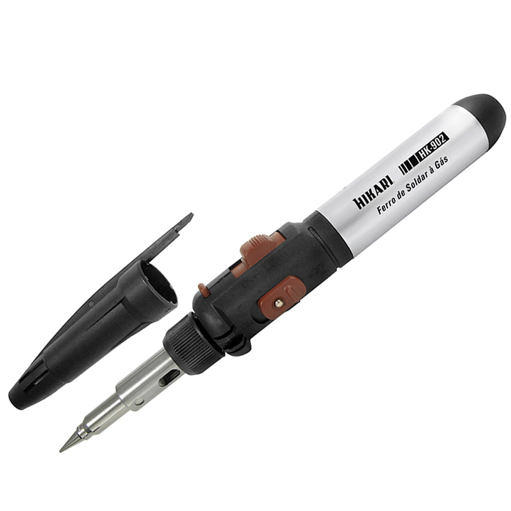 O Ferro de Soldar a Gás HK-902 é uma ferramenta versátil 3 em 1, combinando as funções de ferro de soldar, maçarico e soprador térmico em um único produto. Com design 100% seguro e fácil de usar, ele se destaca pelo acendimento automático tipo Magiclick e ajuste de vazão do gás, proporcionando maior praticidade durante o trabalho. Compacto e leve, o HK-902 é perfeito para profissionais que buscam eficiência e mobilidade, sendo facilmente recarregável com gás butano.