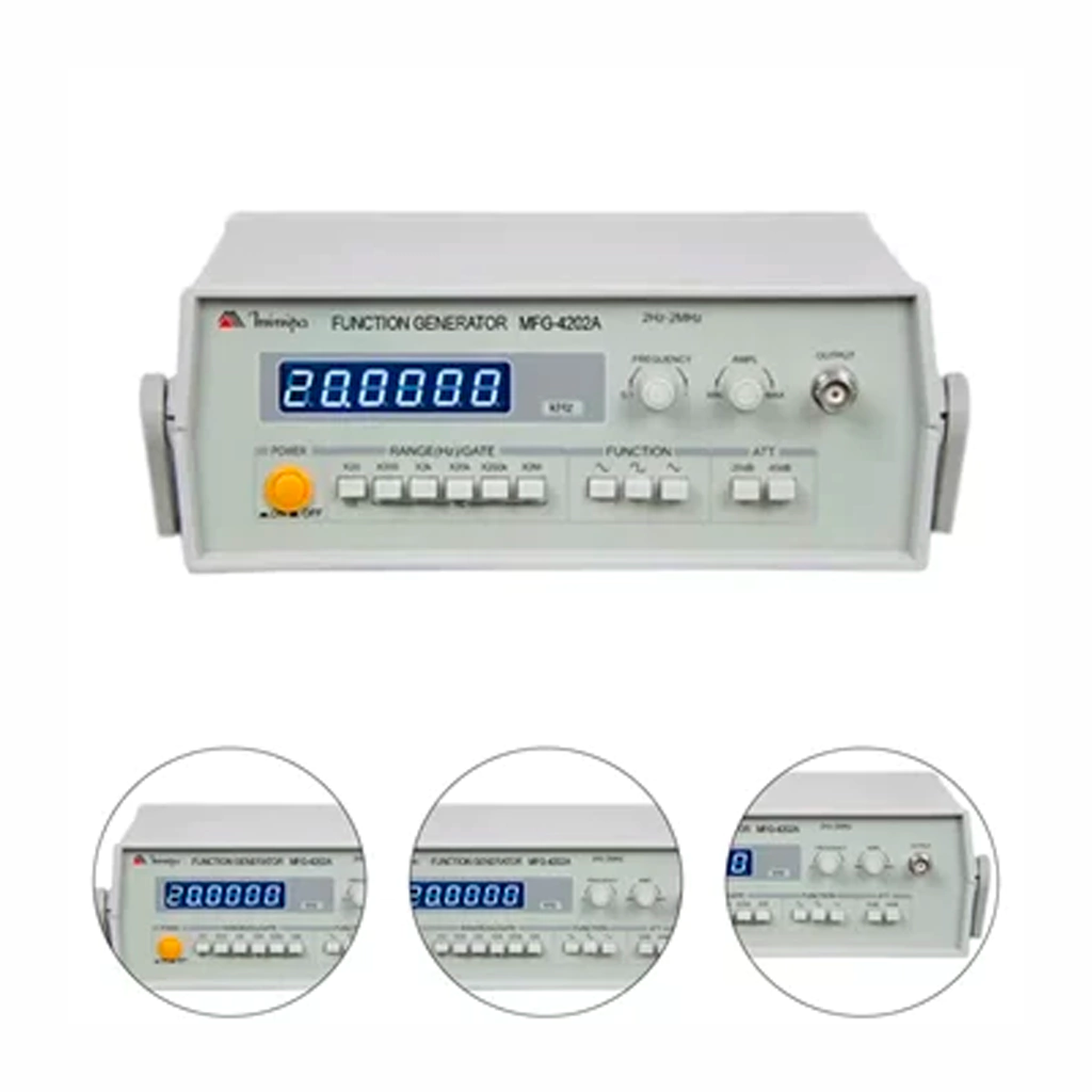 Sua amplitude de saída atinge até 8Vpp em cargas de 50Ω e 16Vpp em circuito aberto, com uma impedância de saída de 50Ω. O gerador ainda conta com atenuadores de 0, 20 e 40dB, garantindo flexibilidade nas configurações e resultados precisos em diferentes condições de teste. Alimentado por 110/220V AC, o MFG-4202A é compacto e leve, facilitando o transporte e a instalação em diferentes ambientes de trabalho.