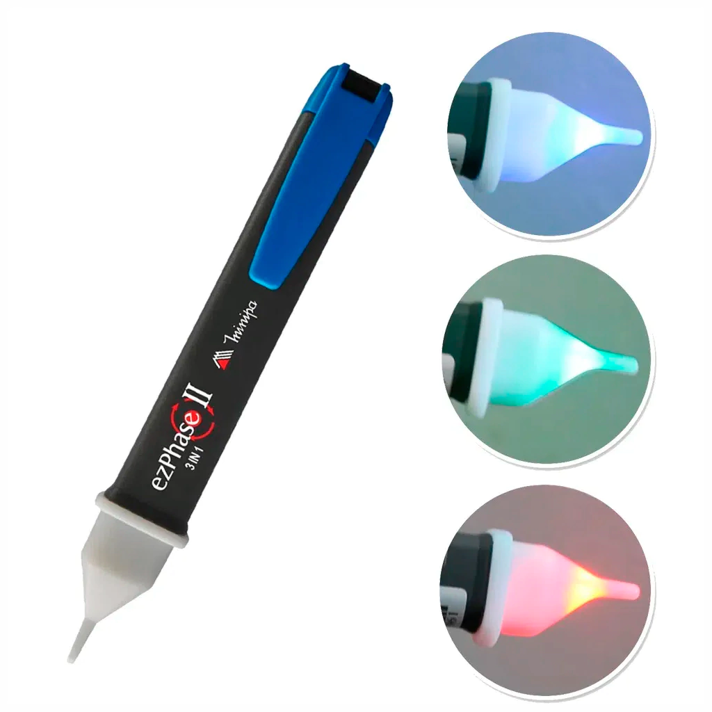 O Identificador de Fase EzPhase II da Minipa é uma ferramenta essencial para detecção de sequência de fase em sistemas trifásicos. Ele opera com tensão AC de 90V a 1000V, oferecendo alta precisão em diversas aplicações elétricas. Com indicador de tensão por LED e buzina, o EzPhase II fornece alertas sonoros e visuais, facilitando a identificação de fases.