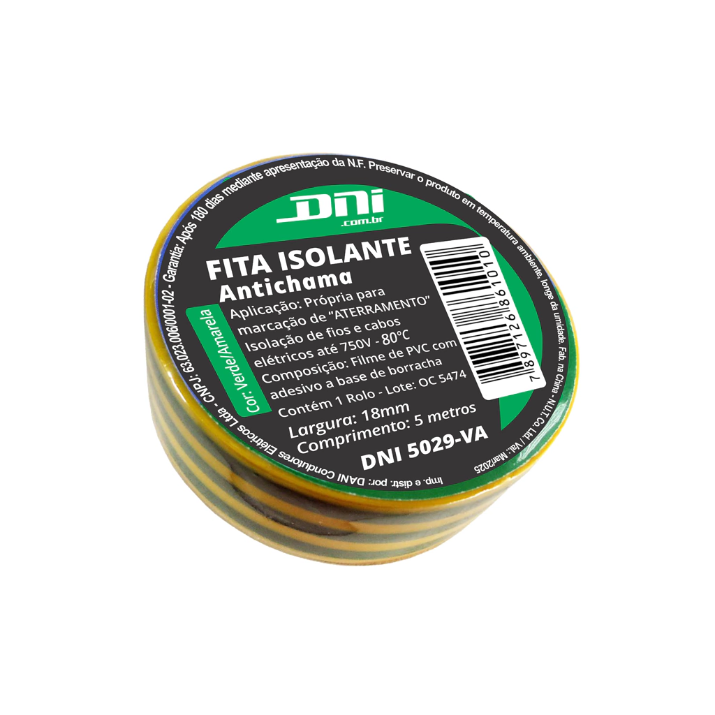 Fita Isolante PVC Antichama Verde/Amarela 5 Metros - DNI